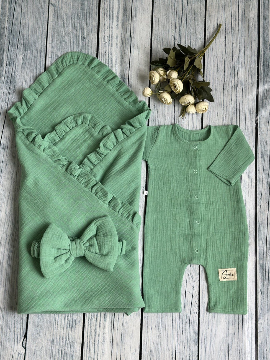Теги: Купить детские конверты, комбинезон оптом, детские конверты на выписку оптом. 335-ОЛ. Комплект из детского комбинезона, р 56 и конверта муслин, хлопок 100% 90/90 см, олива цена,отзывы официальный сайт "Стеша Невинномысск"