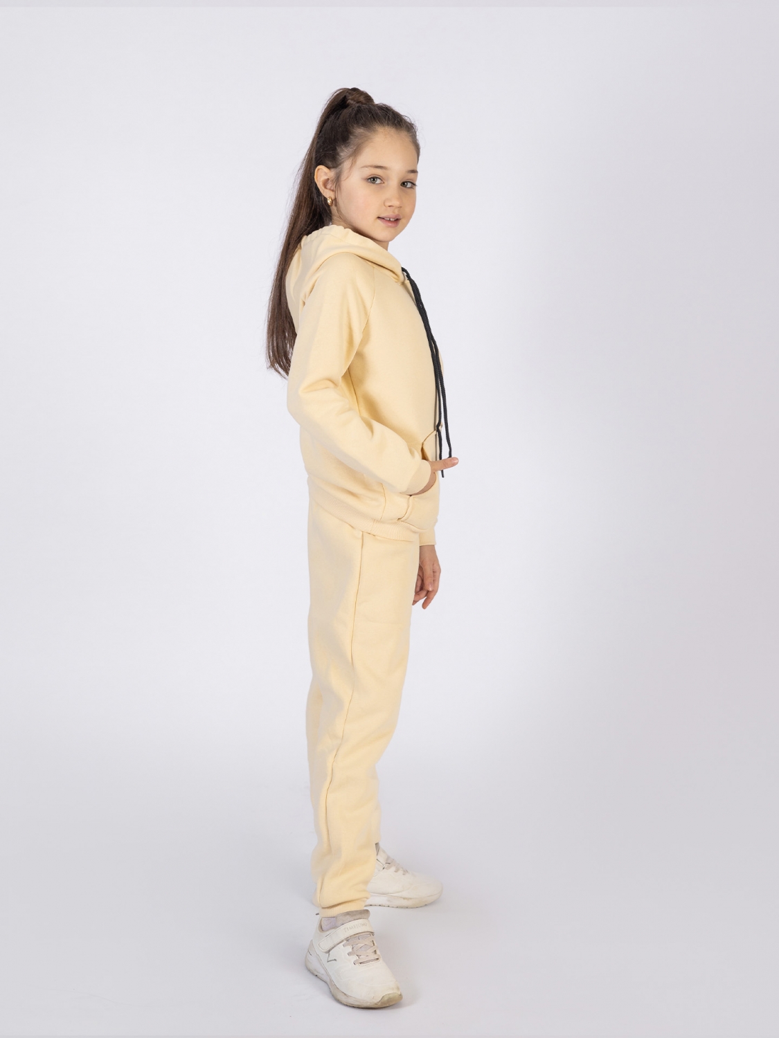 Купить оптом 296-СЛ. Свитшот с капюшоном + Штаны, хлопок 65%, 35% ПЭ, 3-х нитка (начес) сливочный 98,104,110,116 в Невинномысске