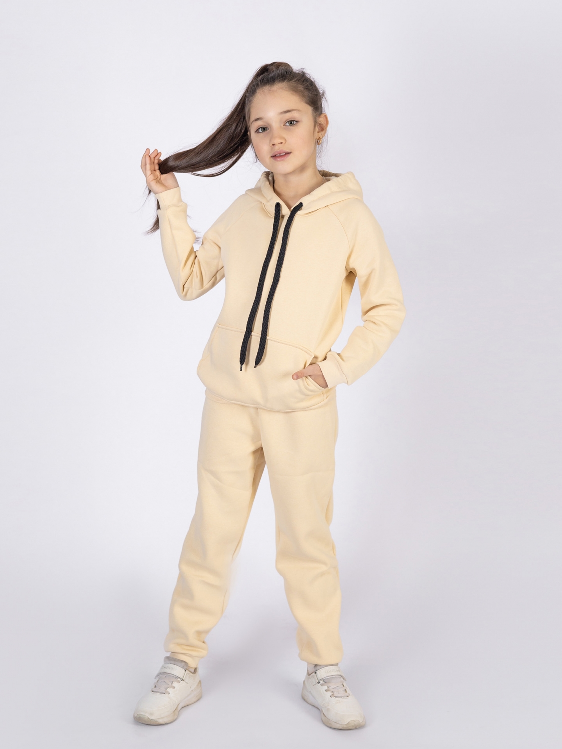296-СЛ. Свитшот с капюшоном + Штаны, хлопок 65%, 35% ПЭ, 3-х нитка (начес) сливочный 98,104,110,116