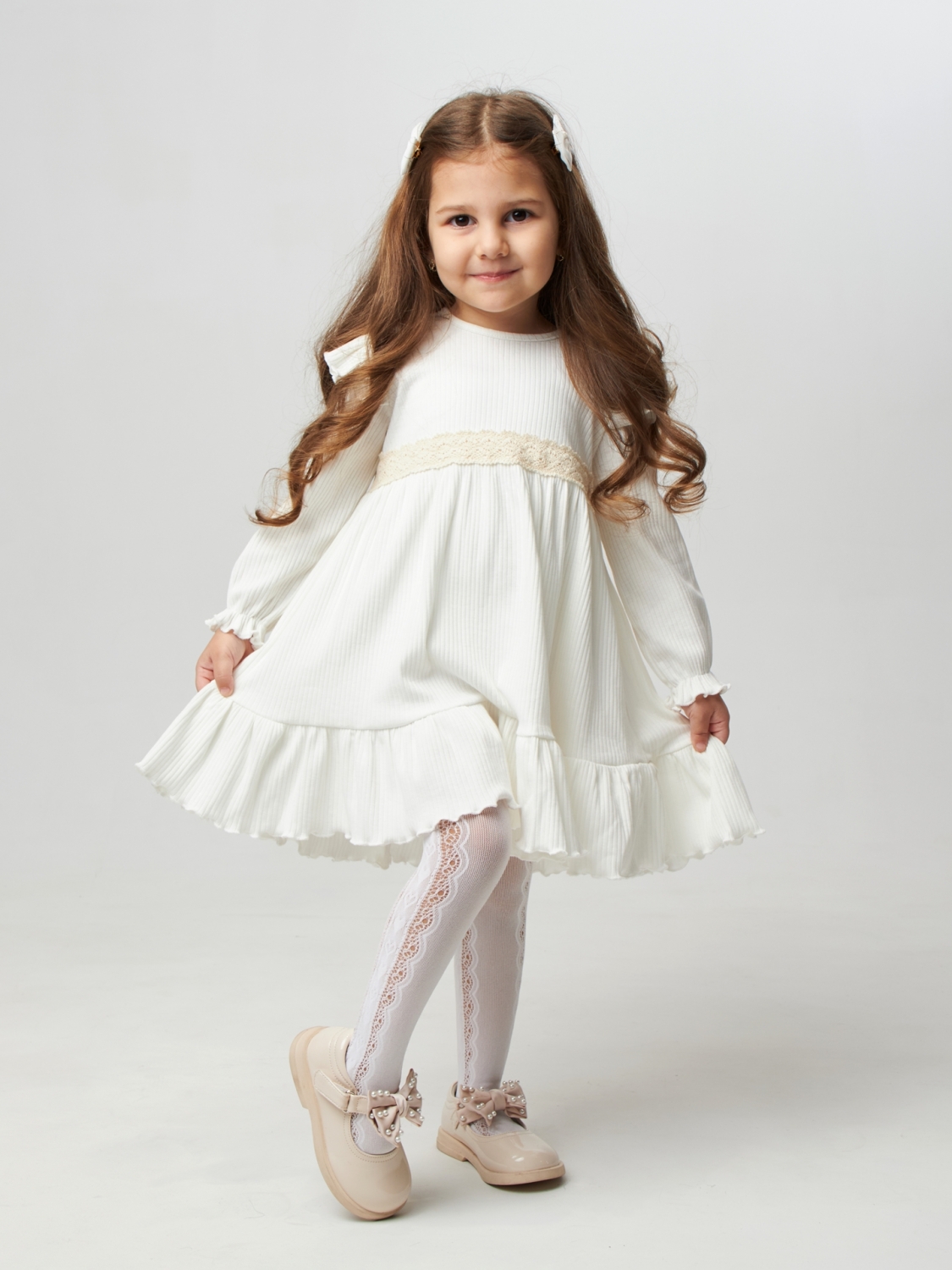 Выпустили красивое и нежное  детское платье, выполнено из турецкой мягкой лапши, краисивое кружево добавляет изюменку